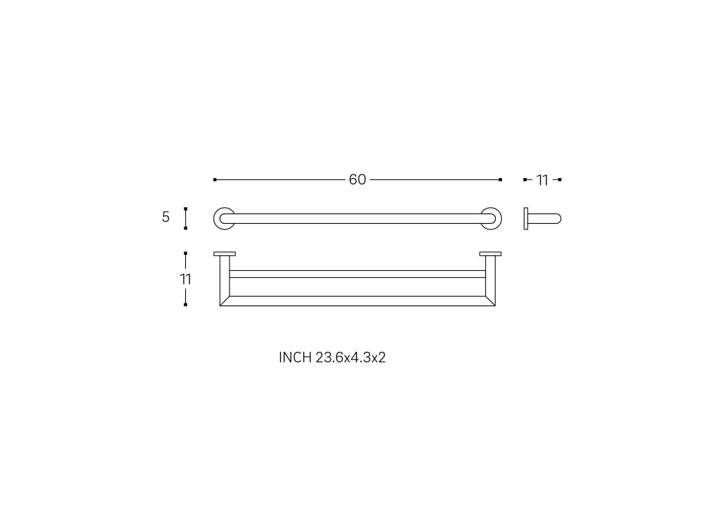 The straight towel rail from the Kubic collection has a versatile design that puts the power of creation in your hands, allowing you to leave a unique mark on your space. Made of high-quality metal, it guarantees durability and resistance, making it ideal for everyday use. Measurements: 60 cm x 11 cm x 5 cm