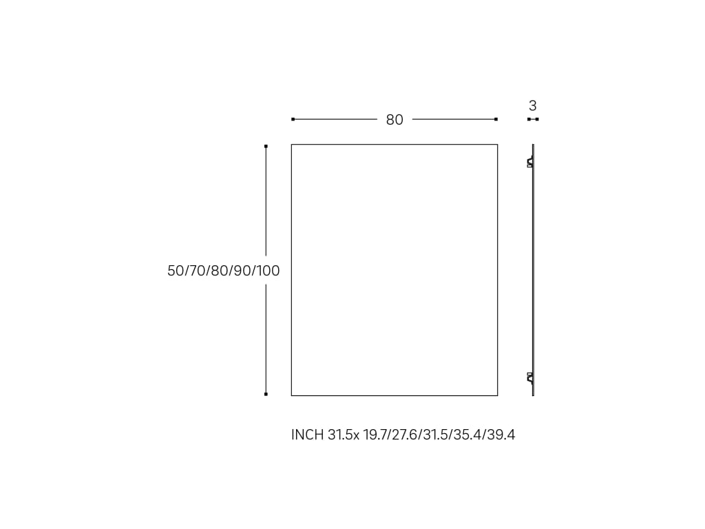 The wall mirror from the Basic collection achieves maximum functionality, showcasing simple, pure lines for all types of environments. Dimensions: 3 cm x 80 cm x 80 cm