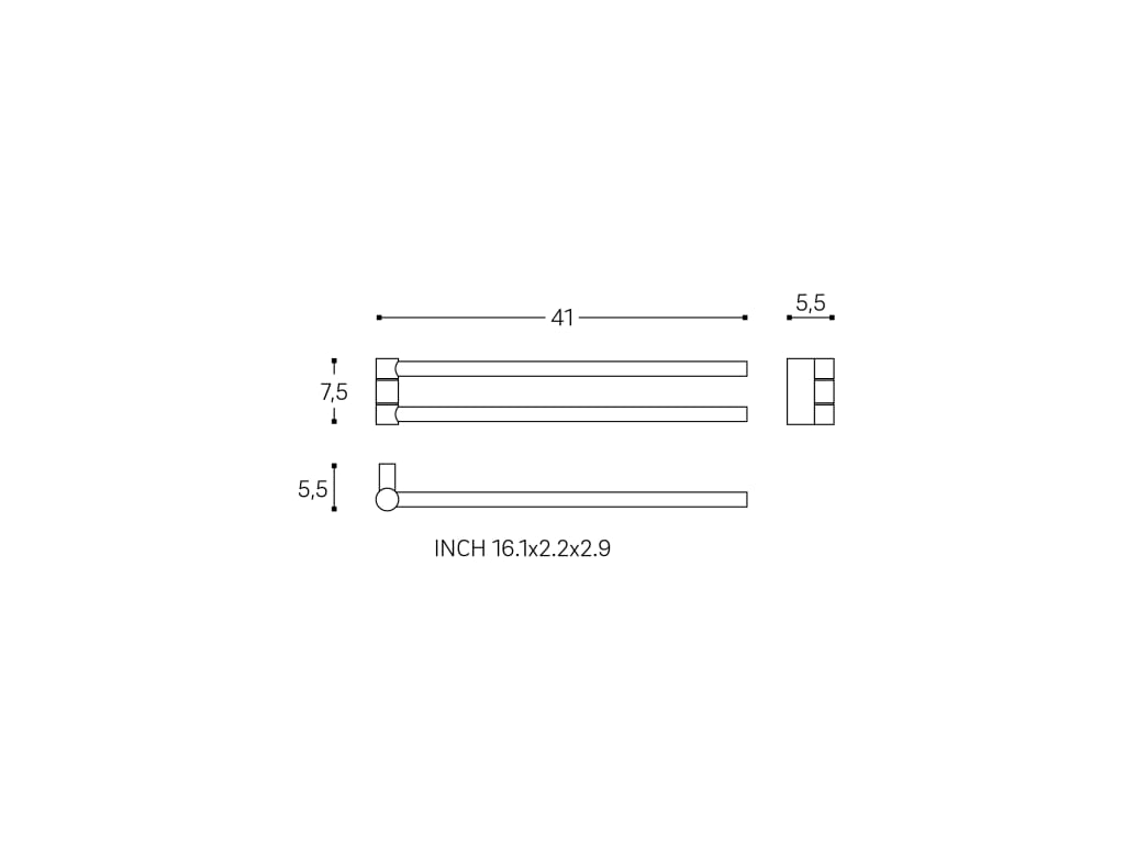 The double swivel towel rail from the Bwc collection stands out for its functional and sophisticated design, highlighting the balance between simple shapes and precise details that transforms any bathroom into a modern and harmonious space. Made of high-quality metal, it guarantees durability and resistance, making it ideal for daily use. Measurements: 41 cm x 5.5 cm x 7.5 cm