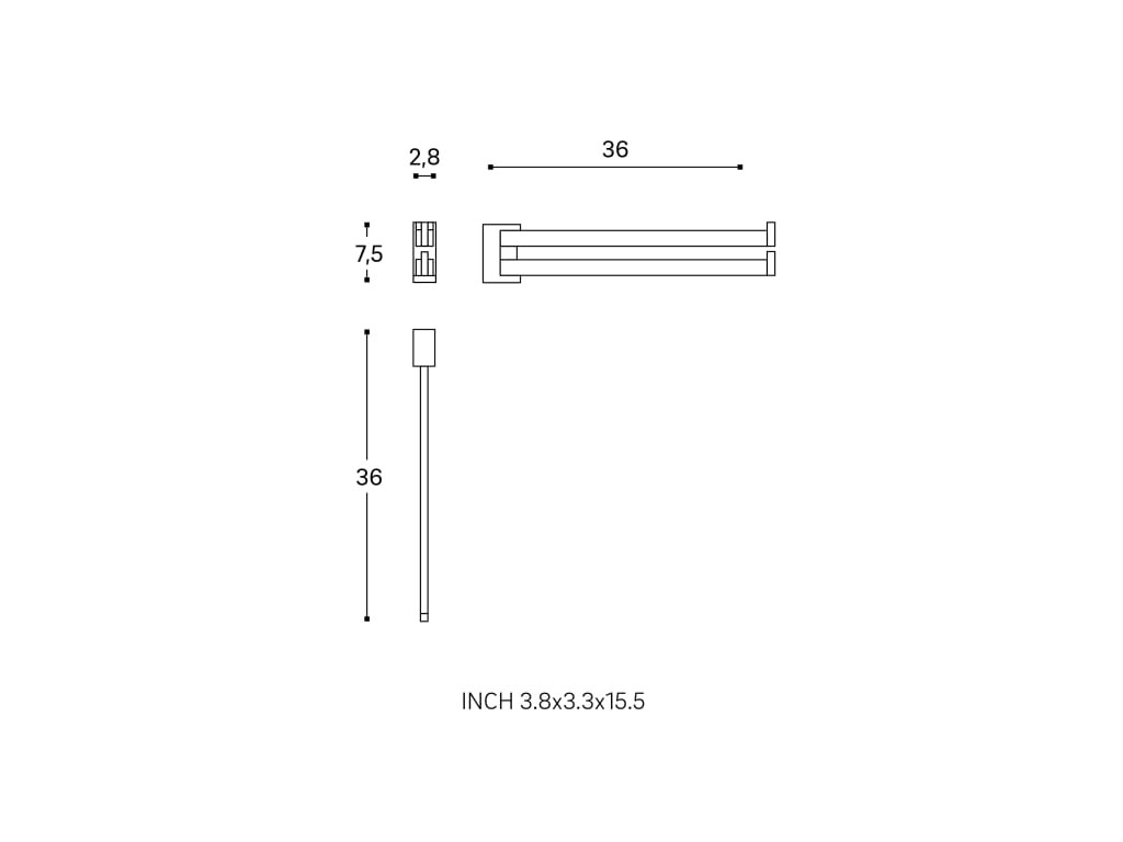 The double swivel towel rail from the Bathlifea collection stands out for its modern simplicity and impeccable details, offering functional solutions that enhance the sophistication of any space. Made of high-quality metal, it guarantees durability and resistance, making it ideal for everyday use. Measurements: 3 cm x 36.5 cm x 7.5 cm