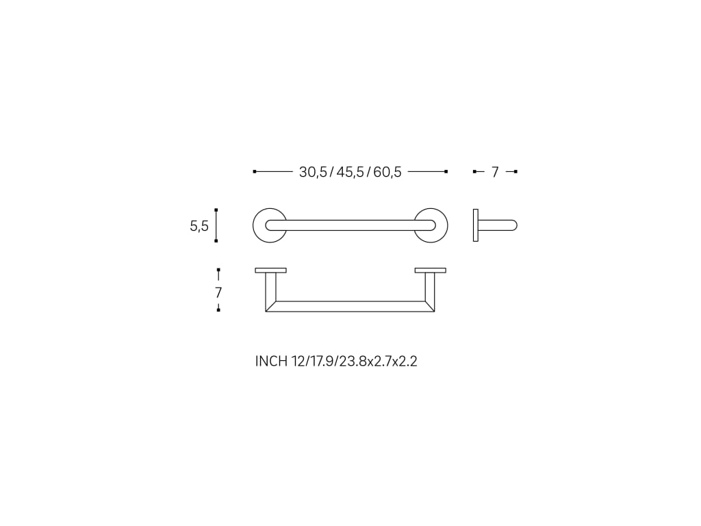The straight towel rail from the Duo Round collection is ideal for making the most of space in small bathrooms or for those looking for tidiness without the need for drilling. Made of stainless steel and high-quality metal, it guarantees durability and resistance, making it ideal for everyday use. Measurements: 30.5 cm x 7 cm x 5.5 cm
