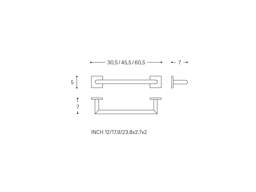 The straight towel rail from the Duo Square collection is ideal for making the most of space in small bathrooms or for those who want to keep things tidy without having to drill holes. Made of high-quality stainless steel and metal, it guarantees durability and resistance, making it ideal for everyday use. Measurements: 60.5 cm x 7 cm x 5 cm