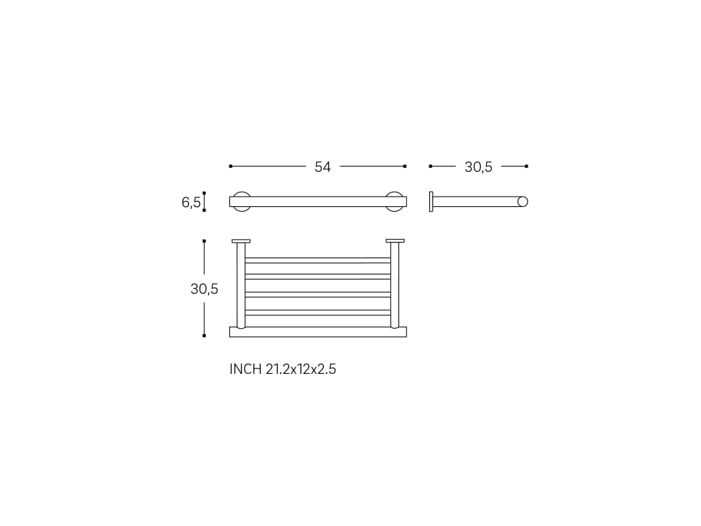 The straight towel rail from the Architect collection offers functionality without compromising on style, with a focus on quality that lasts over time. Simplicity and elegance that adapt to any space. Made of high-quality metal, it guarantees durability and resistance, making it ideal for everyday use. Measurements: 54 cm x 30.5 cm x 6.5 cm