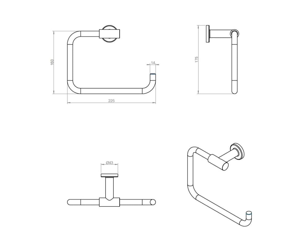 The towel rail from the Architect collection offers functionality without compromising on style, with a focus on quality that lasts over time. Simplicity and elegance that adapt to any space. Made of high-quality metal, it guarantees durability and resistance, making it ideal for everyday use. Measurements: 22.5 cm x 16 cm x 8.5 cm
